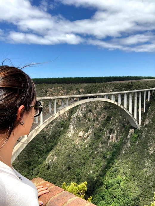 Seguimos no dia seguinte para a próxima parada, Ponte Bloukrans Bridge. A parada foi só para olhar mesmo, mas é aqui que tem o maior bungee jump de ponte do MUNDO. Meu marido na hora decidiu que queria saltar, mas já estava lotado e ele não conseguiu.