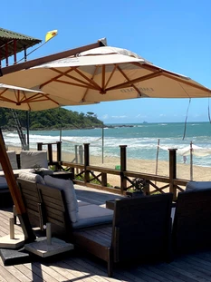 O Hotel está localizado em frente a praia dos Amores, eles possuem toda a estrutura de praia com guarda-sol, espreguiçadeiras e serviço de restaurante.
