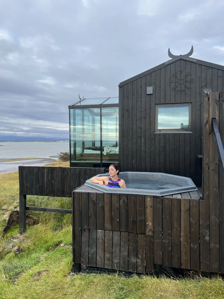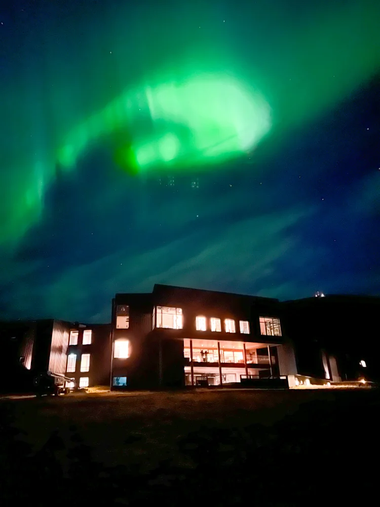 Nos hospedamos no Fosshotel Glacier Lagoon, um hotel moderno e acolhedor, cercado por um cenário de natureza bruta. E foi ali que vivemos o ponto alto de toda a viagem: a primeira aurora boreal.