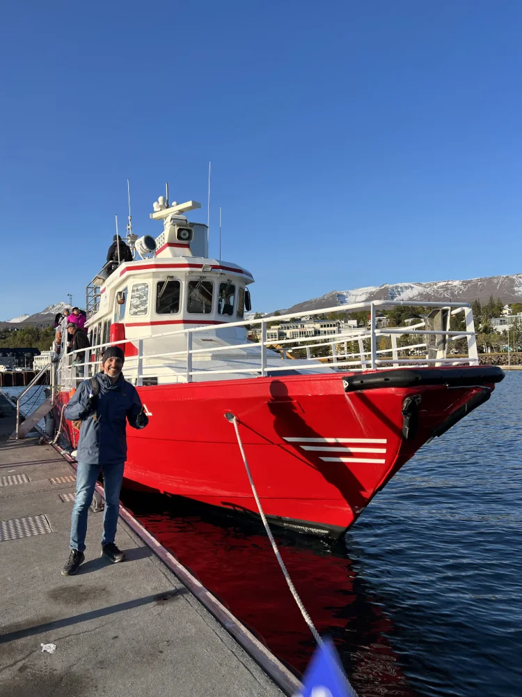 Chegamos a Akureyri, conhecida como a capital do norte, no entardecer. A cidade é charmosa e vibrante, com casinhas coloridas, lojas locais e cafés aconchegantes. No dia seguinte, embarcamos em um passeio de barco para avistar baleias, uma das atividades mais procuradas da região.