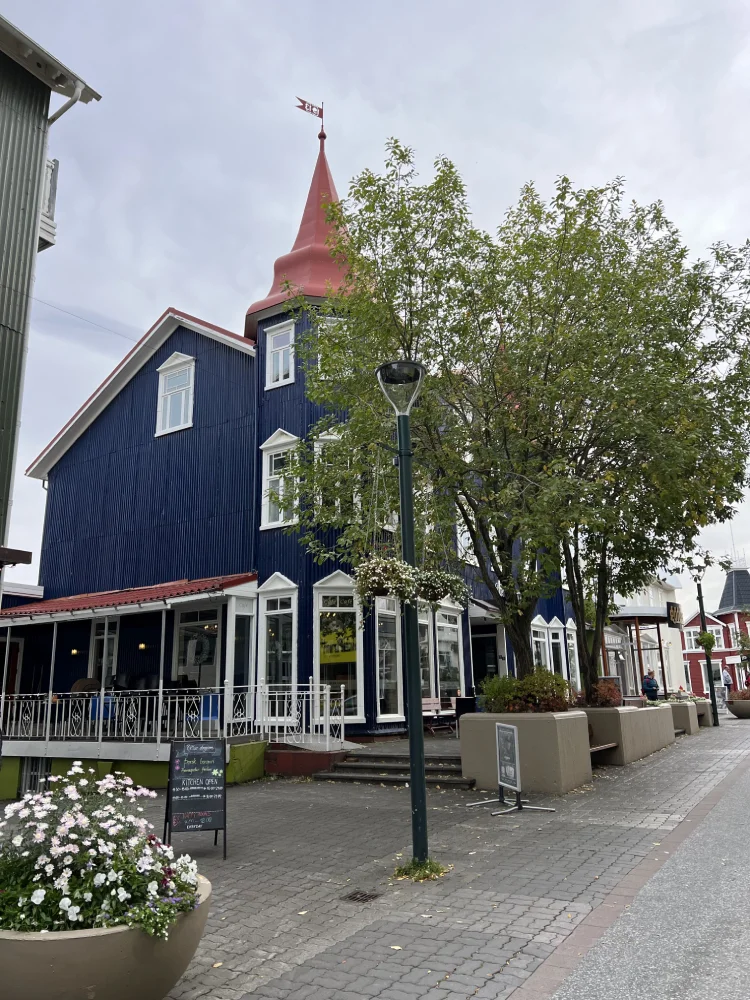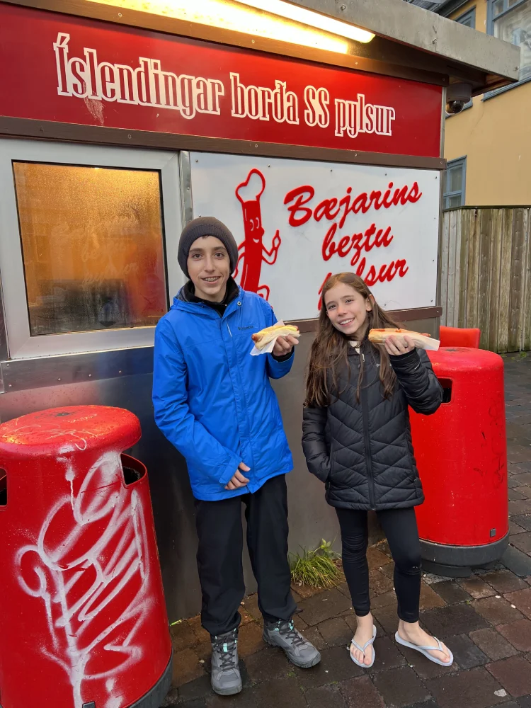 Depois do passeio, aproveitamos o resto do dia para caminhar pela cidade, tomar café e provar o famoso cachorro-quente islandês, feito com pão preto, a massa é preparada com ingredientes vulcânicos. Uma combinação curiosa e deliciosa — e uma pausa perfeita para encerrar mais um dia inesquecível dessa jornada pelo norte da Islândia.
