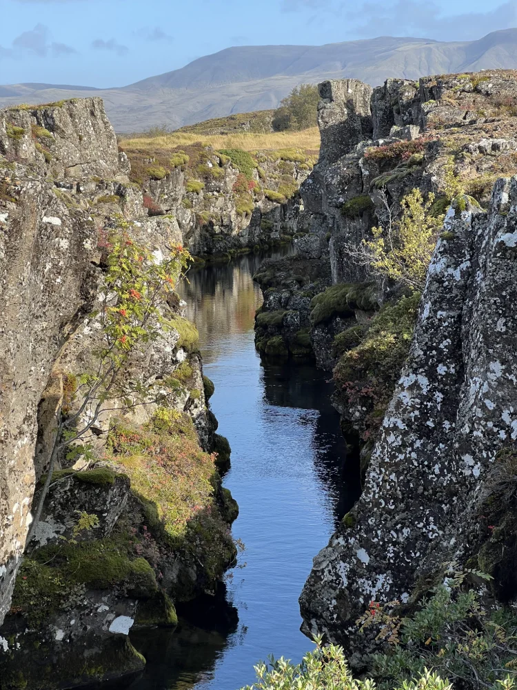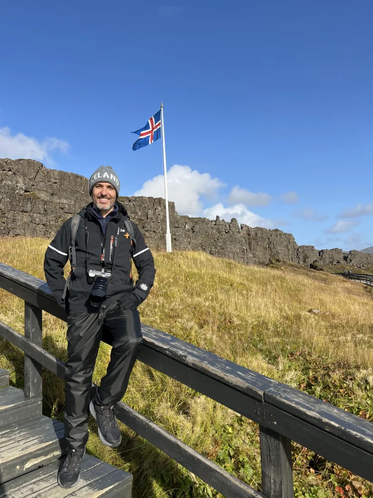 A primeira parada foi no Þingvellir National Park, um lugar de grande importância histórica e geológica. Foi ali que se formou o primeiro parlamento islandês, no século X, e também onde é possível ver — e até mergulhar — entre as placas tectônicas da América do Norte e da Eurásia, na fenda conhecida como Silfra.