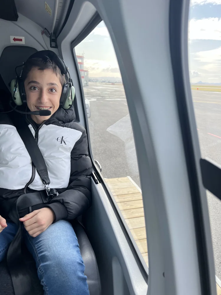 Durante o trajeto, sobrevoamos paisagens surreais — montanhas cobertas de neve, crateras e rios de lava solidificada.