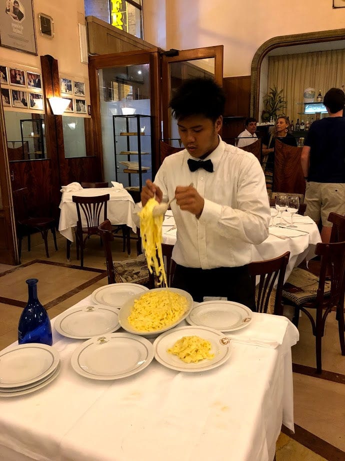Para o jantar, reservei o restaurante Il Vero Alfredo, do criador do “Fettuccini Alfredo”, é um restaurante bem grande e turístico mas, para quem gosta do prato, é uma parada obrigatória, a família Alfredo já está na quarta geração e a receita continua a mesma desde 1908, mais de 100 anos de excelência. Voltaria várias vezes, com certeza o melhor Fettuticcini Alfredo.