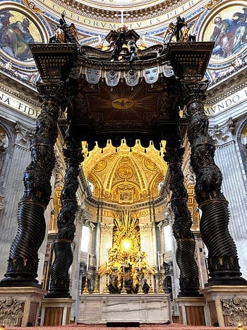Feito o Museu, caminhamos uns 20 minutos até chegar na Basílica de São Pedro, a fila para entrar era de aproximadamente 3 horas, e o sol estava gritando! Para entrar na Basílica não precisa pagar, mas se quiser entrar bem rápido, você pode comprar o skip the line, um ingresso que você não pega fila, você entra direto, pagamos EUR 20,00 por pessoa e criança EUR 14,00, é vendido do lado da Basílica em um quiosque de venda de ingressos para o Museu do Vaticano. Com o ingresso na mão, em menos de 5 minutos estávamos dentro da igreja.